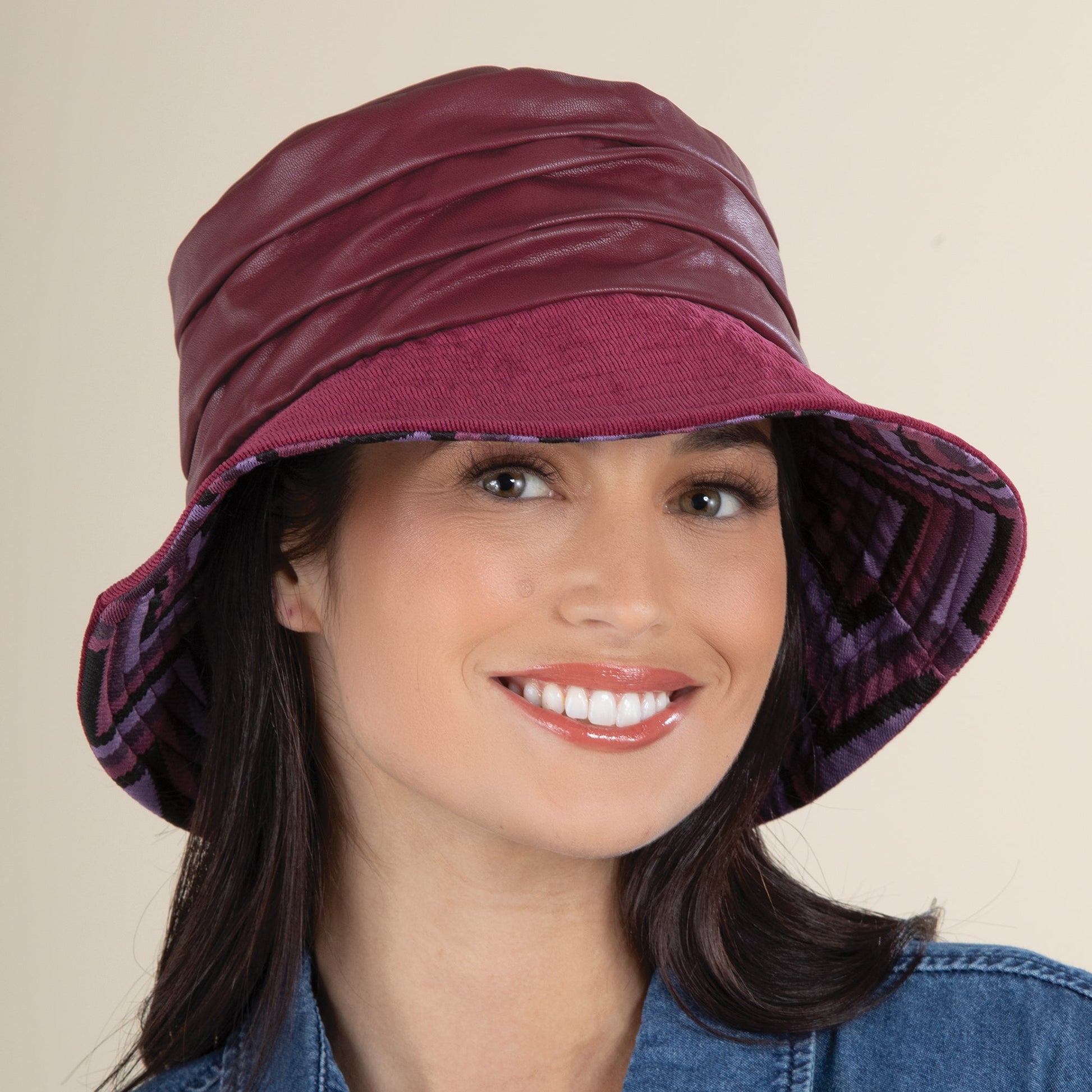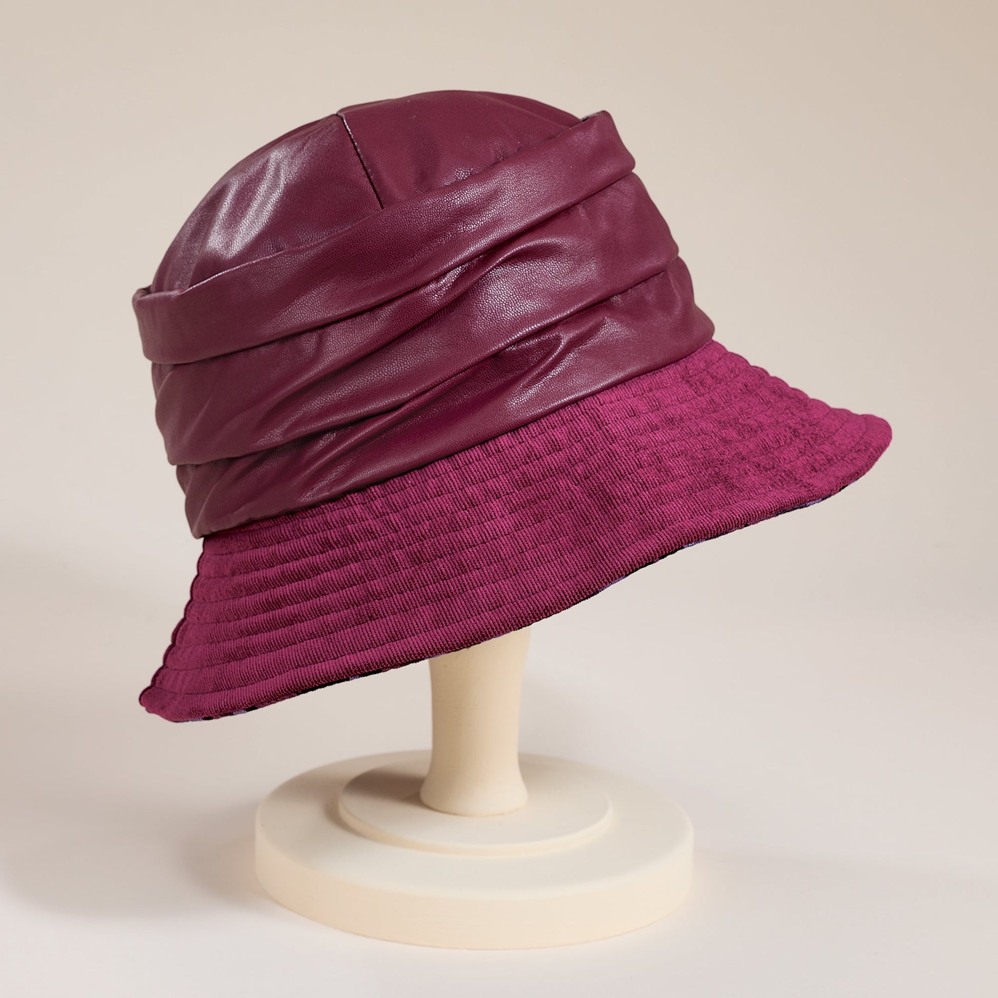 Antonia Burgundy Italian Suede-Brimmed Bucket Hat